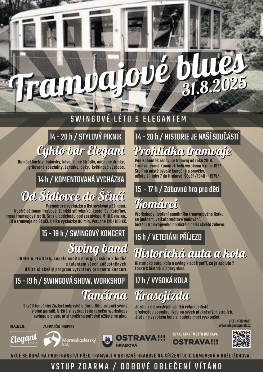 Vstup na akci je zdarma díky finanční podpoře Moravskoslezského kraje, Statutárnímu městu Ostrava a Městskému obvodu Ostrava Hrabová, kteří podpořili projekt Swingové léto 2025 v rámci, kterého je akce realizována.