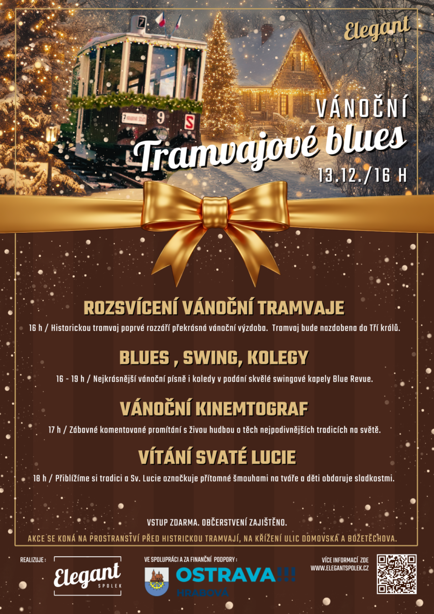 « Všechny Akce Vánoční tramvajové blues 13. prosince, 16:00 - 19:00 « Tramvajové blues PLES ELEGANT 2026 » . + Kalendář Google+ Exportovat iCal Podrobnosti Datum: 13. prosince Čas: 16:00 - 19:00 Rubrika Akce: Akce spolku Webová stránka: www.elegantspolek.cz Místo konání Ostrava Hrabová, Domovská 28